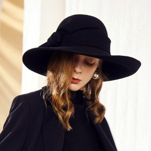 Hats 100% Wool Bucket Hat Casual With Bowknot Headpiece Headwear #7694539
