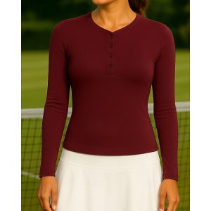 Women’s Solid Colored Tennis Shirt Sport Top Stylish Elastic Sweat-Wicking Breathable Golf Pickleball Yoga Crew Neck Top Winter Black Red Purple Wool Tennis Clothing #18582107