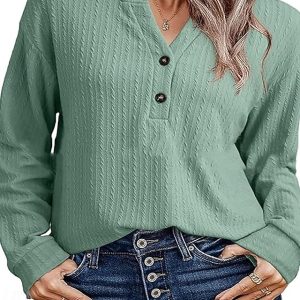 Women’s Blouse Plain Elegant Vintage Stylish Long Sleeve V Neck Regular Tops Holiday Going out Buttons Silver Grass Green Black White Pink Summer Spring Fall #19123352