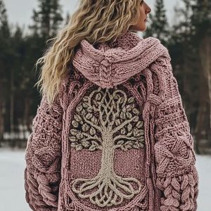 Women’s Cardigan Daily Casual Graphic Paisley Ribbed Hooded Patchwork Pocket Buttons Long Sleeve Long Tops Knit Outdoor Weekend Pink Fall Winter #19546888