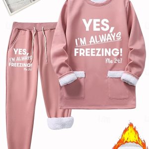 Women’s Warm Daily Two Piece Sets Tracksuit Pants Sets Long Sleeve Crew Neck Graphic Letter Drawstring Print Casual Daily Black Dark Pink Blue Fall Regular Fit #14824848