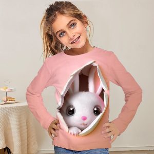 Easter Girls’ 3D Graphic Animal Rabbit T shirt Tee Long Sleeve Spring Fall Fashion Basic Kids 4-12 Years Crew Neck Outdoor Casual Daily Regular Fit #14668934