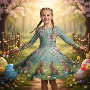 Easter Girls’ 3D Graphic Rabbit Dress Long Sleeve 3D Print Spring Fall Daily Vacation Party Casual Princess Beautiful Kids 4-12 Years Casual Dress A Line Dress Knee-length Regular Fit #17366442