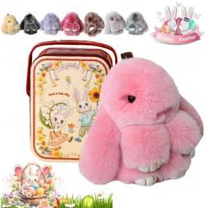 Easter Soft Bunny Keychain with Tin,Handmade Soft Bunny PomPom Charms Plush Keychain Rabbit Christmas Gift for Backpack,Bag Charm Gift Key Chain #16419772