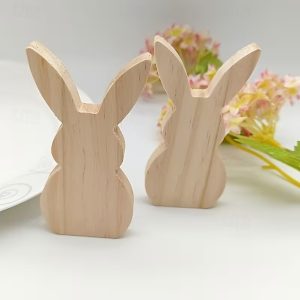 4 Pack Easter Rabbit Ornaments Natural Wooden Rabbits Suitable for Easter Decorations #15989648
