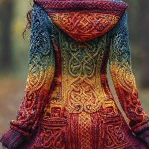 Women’s Cardigan Vintage Viking Daily Ethnic Style Color Gradient Ribbed Hooded Pocket Buttons Print Long Sleeve Long Tops Knit Outdoor Weekend Orange Fall Winter #12235443