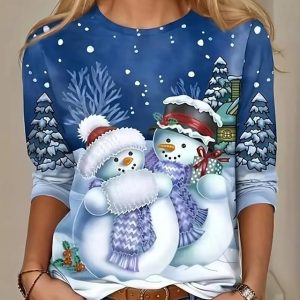 Christmas Women’s T Shirt Graphic Vintage Fashion Stylish Long Sleeve Crew Neck Regular Tops Daily Weekend Print White Red Blue Spring Fall Winter #11082005