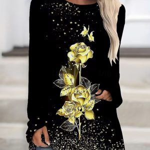 Women’s T Shirt Floral Graphic Butterfly Vintage Stylish Classic Long Sleeve Crew Neck Round Neck Long Tops Daily Print Yellow Blue Spring Fall #18905921