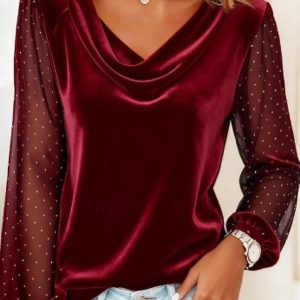 New Year Women’s Velvet Solid Color Stylish Long Sleeve Cowl Neck Regular Tops Blue Black Wine Fall Winter #18618059