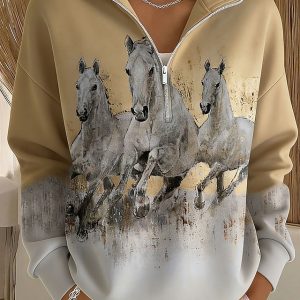 Women’s Pullover Sweatshirt Graphic Animal Casual Long Sleeve Half Zip Regular Tops Casual Dailywear Holiday Zipper Blue Pink khaki Fall #12962840