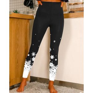 Women’s Christmas Leggings Snowflake Moisture Wicking Yoga Fitness Tennis Tights Spandex Winter Sports Activewear Cropped Leggings #9384774