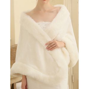 Faux Fur Wraps Women’s Wrap Elegant Sleeveless Faux Fur Wedding Wraps With Pure Color For Wedding Fall #11341802