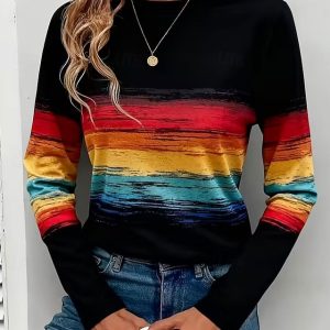Women’s T Shirt Graphic Striped Vintage Stylish Classic Long Sleeve Crew Neck Regular Tops Daily Weekend Print Black Spring Fall Winter #16743206