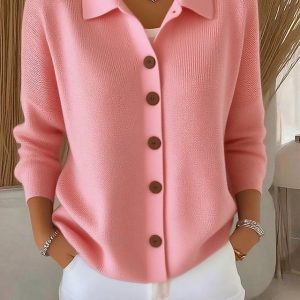 Women’s Sweater Elegant Casual Soft Pure Color Ribbed Shirt Collar Knitted Long Sleeve Regular Tops Knit Outdoor Daily Weekend Black White Spring Fall #15913241