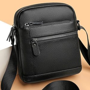 Men’s Genuine Leather Shoulder Bag – Black & Brown Crossbody Bag with Multiple Zipper Pockets, Stylish and Durable for Work and Casual Outings #15258138
