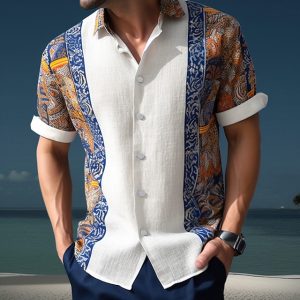 Men’s Floral Tribal Ethnic Shirt Button Up Shirt Short Sleeve Fashion Designer Casual Outdoor Casual Summer Spring Turndown Print A E I M Q #9570152