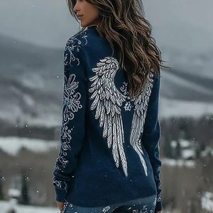Women’s Viking Vings T Shirt Graphic Vintage Bohemia Vintage Fashion Long Sleeve Crew Neck Regular Tops Daily Weekend Print Dark Gray Spring Fall Winter #14763884