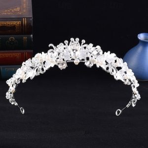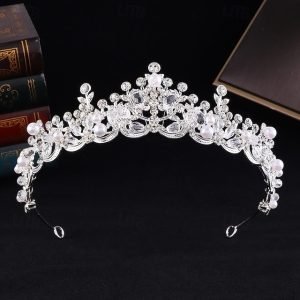Crown Tiaras Headdress Alloy Wedding Birthday Elegant With Rhinestone Pearl Headpiece Headwear #10726124