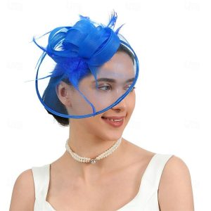 Fascinators Headwear Headpiece Tulle Feathers Formal Business / Ceremony / Fall Wedding Kentucky Horse Race Ladies Day Vintage Elegant With Feather Bowknot Headpiece Headwear Race Day Dress #7783158