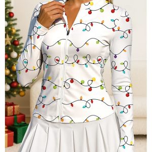 Christmas Women’s Christmas Lights Tops Sport Shirt Tennis Shirt Tennis Top Long Sleeve Zipper UPF50+ UV Resistant High Elasticity Moisture Wicking Breathable Volleyball Tennis Golf Round Stand Collar #12346912