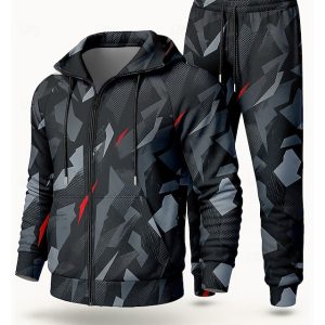 Men’s Hoodie Tracksuit Activewear Set Drawstring Zip Up Geometry Clothing Suit Fall Dark Gray Vocation Outdoor Travel Lightweight Fashion Long Sleeve Sport Activewear Stretchy Regular Fit #14379673