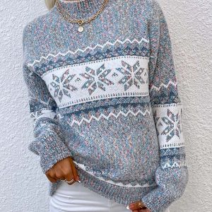Women’s Christmas Sweater Fair Isle Sweater Pullover Ugly Sweater Crew Neck Knit Knitted Fall Winter Party Outdoor Streetwear Long Sleeve Print Pink Blue #11749797