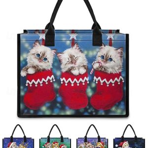 Women’s Christmas Tote Bag – Featuring Kayomi Harai’s Festive Cat Designs, Vibrant Christmas Stockings, Ideal for Holiday Shopping, Gifts and Winter Celebrations #12552154