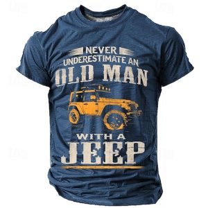 Mens Graphic T-Shirt Never Underestimate An Old Man With A Jeep Design Short Sleeve #18370713