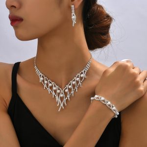 Bridal Jewelry Sets 1 set Imitation Pearl Imitation Diamond 1 Necklace 1 Bracelet Earrings Women’s Elegant European Tassel Fringe Jewelry Set For Wedding Anniversary Party Evening #9431485