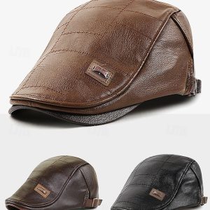Men’s Brown Faux Leather Flat Cap with Quilted Design – Classic Vintage Newsboy Hat for Casual and Outdoor Wear #12347505