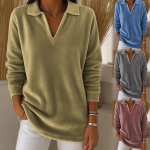 Women’s Blouse Solid Color Stylish Casual Long Sleeve V Neck Regular Tops Daily Blue Purple Green Gray Spring Fall Winter #15938313