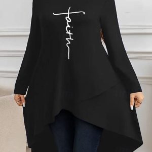 Women’s Pullover Sweatshirt Plain Letter Elegant Warm Fashion Long Sleeve Round Neck Regular Tops Home Work Street Patchwork Print Black Light Grey Fall Winter #10797199