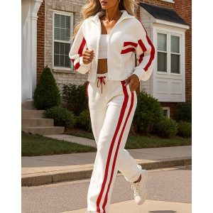 Christmas Women’s Zip Up Sweatshirt 2 Piece Tracksuit Sweatsuit Sets Baggy with Pocket Stripes Clothing Suit Fall Black White Spandex Hiking Vocation Outdoor Long Sleeve Sport Activewear Micro-elastic #14254119