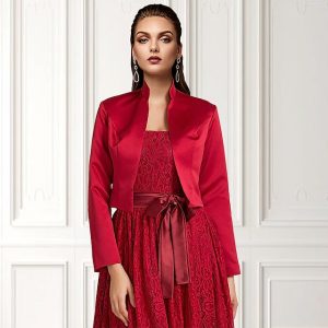 Solid Coats / Jackets Satin Wedding / Party Evening / Casual Wedding Guest Wraps / Bolero With Draping / Solid dress to impress #648406