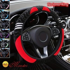 Plush Anti-Slip Car Steering Wheel Cover – Universal 15 Inch Protector for Comfortable Driving – Little Monster Design Accessory #9597305