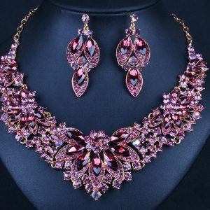 Bridal Jewelry Sets 1 set Crystal Rhinestone Alloy 1 Necklace Earrings Women’s Statement Colorful Cute Fancy Flower irregular Jewelry Set For Wedding Party #7836297