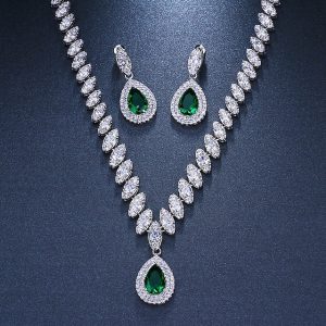 Jewelry Set 2pcs Green Cubic Zirconia Chrome Imitation Diamond 1 Necklace Earrings Women’s Elegant Vintage Fashion Vintage Style Classic Jewelry Set For Wedding Party #19119227