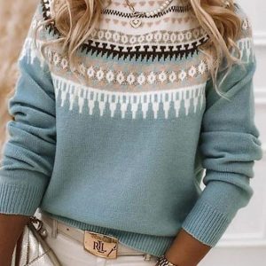 Women’s Sweater Pullover Sweater Jumper Casual Soft Geometric Color Block Ribbed Crew Neck Knitted Long Sleeve Regular Tops Knit Outdoor Daily Weekend Pink Blue Fall Winter #13521296