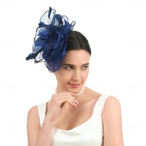 Flowers Feather Net Kentucky Derby Hat Fascinators Headpiece with Feather Floral 1PC Horse Race Ladies Day Melbourne Cup Headpiece dress to impress Race Day Dress 2025 #6894543