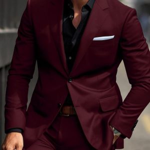Men’s Wedding Suits Notch Black Burgundy Business Formal Solid Colored Tailored Fit 2 Piece Single Breasted Two-buttons #9719501
