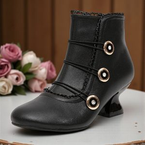 Women’s Black Lace-Up Ankle Boots with Button Detail – 1920s Vintage Victorian Style, Elegant Design for Formal Occasions, Tea Parties and Daily Wear #18868467