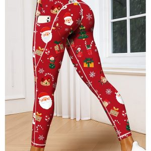 Christmas Women’s Unisex pilates leggings fitness pants Gym Leggings Pockets Stamp Duty Side Pockets Pilates Gym Gym Workout Pants Tights Leggings Christmas Apricot Light Red Royal Blue Sports #17013001