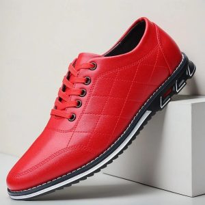 Men’s Red Faux Leather Casual Sneakers – Lightweight, Stylish Lace-Up Design, Ideal for Everyday Wear, Comfortable for Work and Weekend Outings #15884123