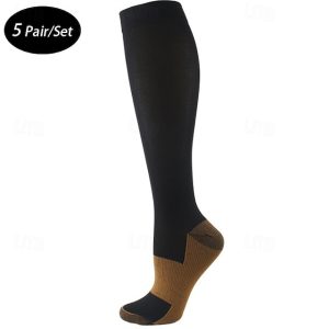 5 Pairs Men’s Compression Socks Hiking Socks Sports Socks Breathable Soft Stretchy Comfortable Outdoor Patchwork Polyester Black White Khaki for Hunting Cycling / Bike Camping / Hiking / Caving #18199373