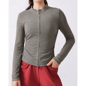 Women’s Solid Colored Tennis Shirt Sport Top Stylish Golf Pickleball Yoga Stand Collar Top Winter Black White Grey Cotton Tennis Clothing #18392170