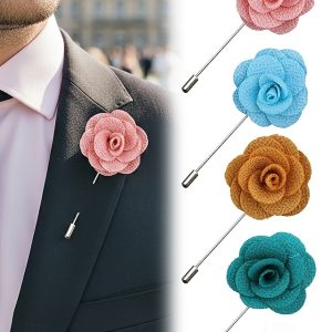 Men’s Handcrafted Rose Lapel Pin – Elegant Polyester Fabric Flower Boutonniere for Weddings, Groom & Groomsmen Suit Accessories, Proms & Parties – Stylish Floral Brooch in Multiple Colors #12674250