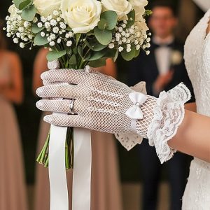 Women’s Polyester Lace Fishnet Gloves, Black & White Breathable Stretch Bridal Gloves, Elegant Vintage Sheer Party Gloves for Weddings, Proms, Evening Events & Formal Occasions #17812512