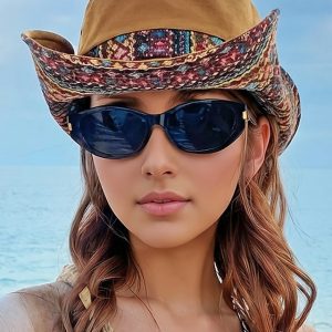 Women’s Bohemian Western Cowboy Sun Hat, Lightweight Polyester Wide Brim UV Protection Cap, Multi-Color Outdoor Beach Vacation Hat for Spring Summer Travel, Rodeo and Casual Daily Wear #14267647
