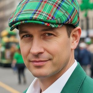 Men’s St. Patrick’s Day Plaid Flat Cap, Cotton-Polyester Blend Fabric, Multiple Color Options, Casual & Vintage Newsboy Hat for Parades, Parties, Festivals & Holiday Celebrations #11967562