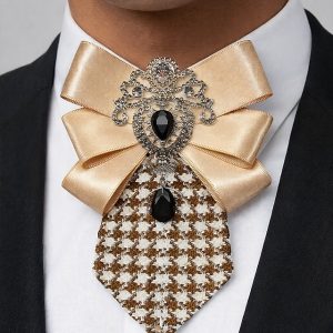 Men’s Polyester Bow Tie Brooch – Two Colors – Elegant Wedding & Party Accessory with Embellished Detailing #10632764
